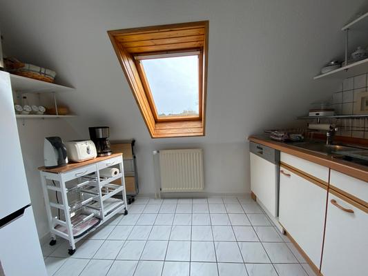 Keine Nachbarn oben im Haus. Da die Dach-Wohnung Richtung Nord-Süd liegt, ist die Wohnung sehr angenehm temperiert. Die 3-Zimmer Ferienwohnung ist mit allem ausgestattet , was sie im Urlaub brauchen. Mit zwei Schlafzimmern, eins mit einem 180x200 cm Doppelbett und einem 140x200 cm Doppelbett ausgestattet. Im Wohnzimmer befindet sich ein neues türkieses 2er Sofa, einen Sessel, sowie ein großer Sitzhocker mit modernen Beistelltischen. Der Eßtisch ist ausziehbar, damit drei bis vier Personen daran Platz haben. Sat-Smart-TV, DVD-Player und CD-Player mit Radio, sowie freies WLAN wird geboten. Ein praktisches Wannenbad mit Duscheinrichtung und eine separate Küche mit einem Wasserkocher, Kaffeemaschine, Toaster, 2er-Ceranfeld, Backofen, ein Kombi Kühl-Gefrierschrank, sowie eine Spülmaschine lassen nichts