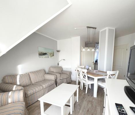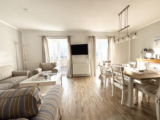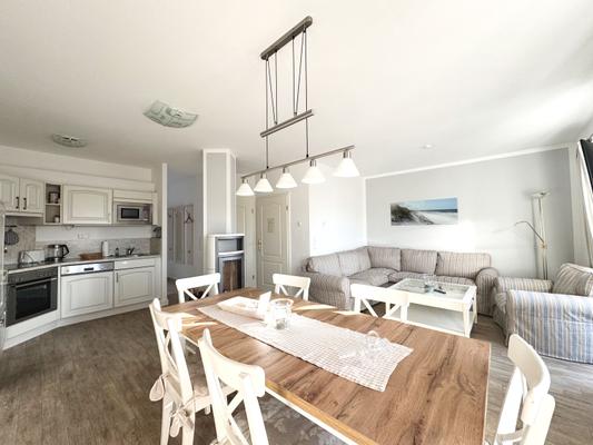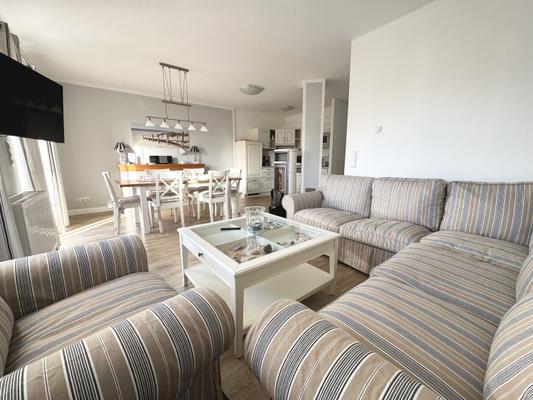 Dadurch eignet sich diese Wohnung hervorragend für Familien, die beispielsweise zusammen mit den Großeltern verreisen, ebenso wie für zwei befreundete Familien, die gemeinsam ihren Sylturlaub verbringen. Die Wohnung ist sehr hell, elegant und geschmackvoll eingerichtet.