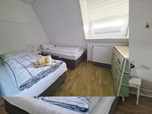 Im Lütt Hüs II befinden sich neben dem schönen, behaglichen Wohnbereich im Erdgeschoss, zwei Schlafzimmer unter dem Dach.